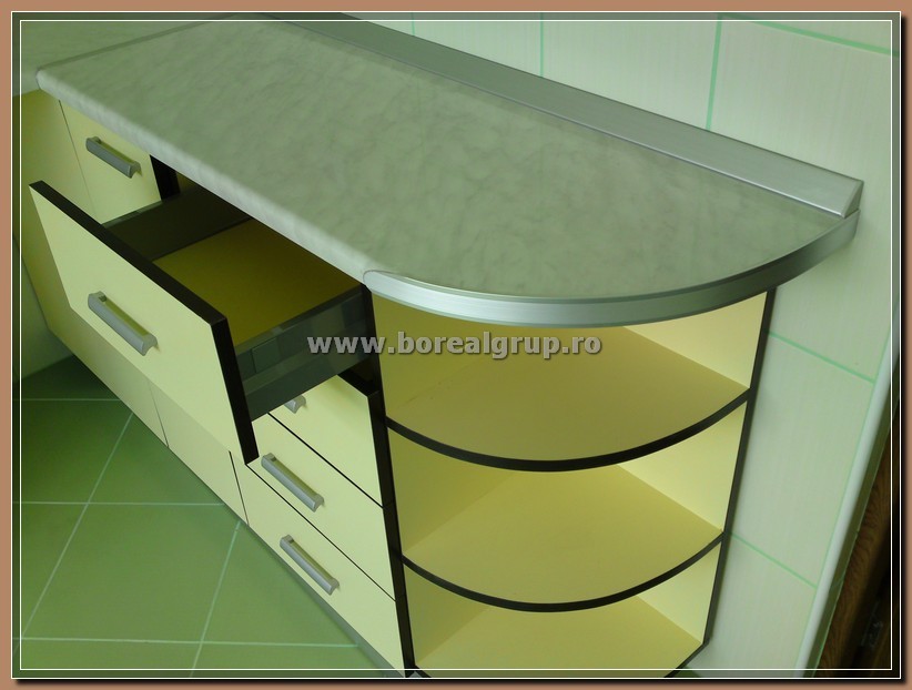 Bucatariile pe care le producem satifac pana si cele mai exigente gusturi in materie de aspect si design, dar sunt in acelasi timp practice si bine structurate pentru a oferi spatii cat mai multe si mai diverse pentru depozitare.